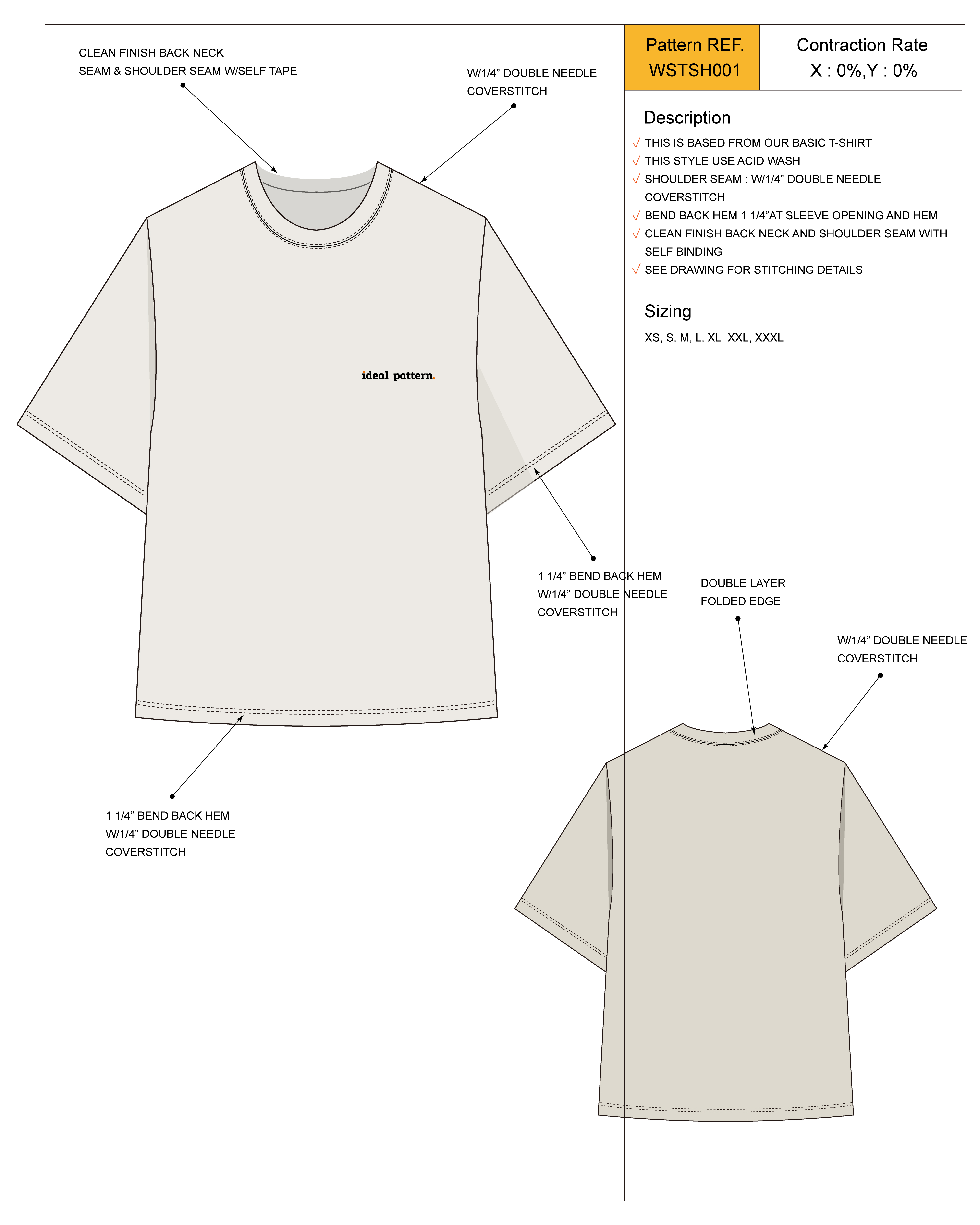 남성사이즈 티셔츠 실물패턴 - MSTSH001